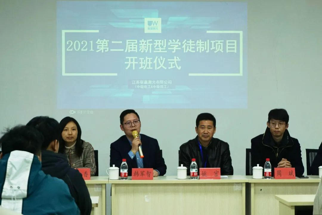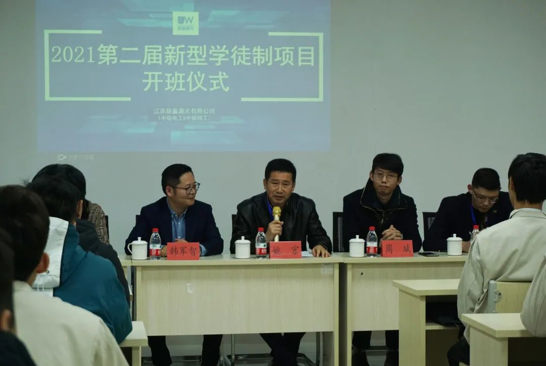 为了贯彻落实江苏省人力资源和社会保障厅、江苏省财政厅印发的《省人力资源社会保障厅省财政厅关于印发江苏省企业新型学徒制工作实施方案》有关要求,按照市人社局的统一安排部署,12月3日下午,江苏联赢激光激光有限公司(下称:江苏联赢激光)联合常州机电职业技术学院(下称:常州机电)共同举行2021年江苏联赢激光新型学徒制开班仪式,江苏联赢激光、常州机电等相关领导出席开班仪式。