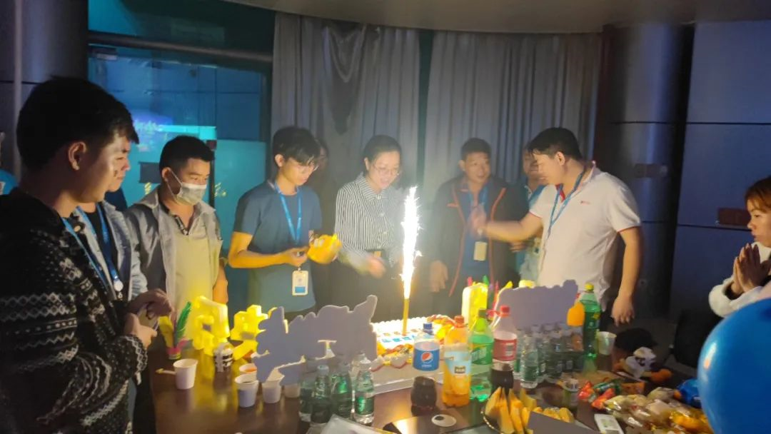 生日会现场,非常高兴收到贾松总经理和牛增强副董事长向全场本月生日的寿星们致以真诚的线上祝福。