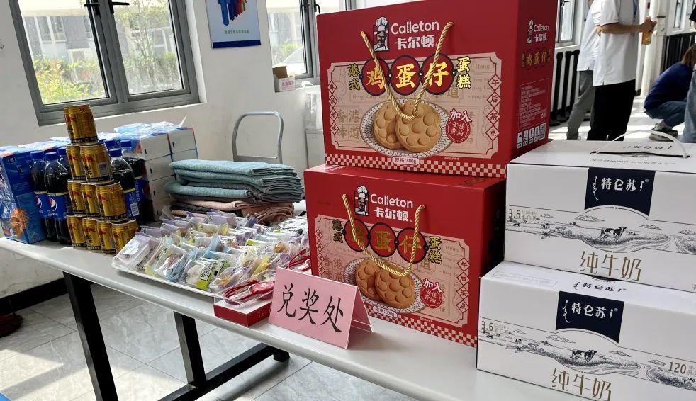 最后凭抽奖区获得的奖品条来兑奖区兑换实物啦,奖品有牛奶、蛋糕、红牛、可乐、毛巾、纸巾,当然还有必不可少的月饼,月饼口味多样可自行挑选。