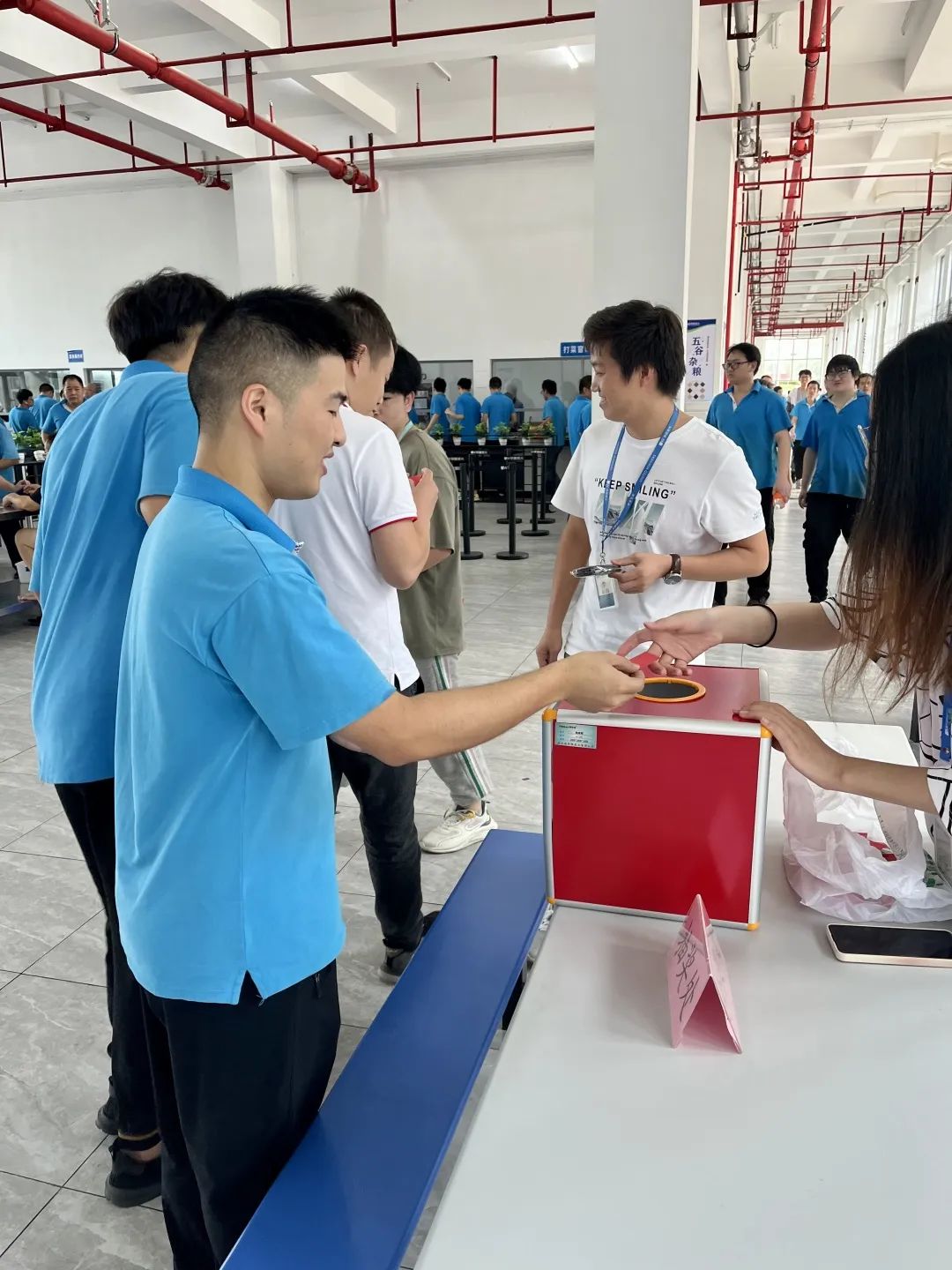 今日中午在食堂,公司组织了一场投壶与抽奖活动,活动现场可以说热闹非凡。活动共分四个区域,想要获得最终的礼品还得按照顺序一步步打卡哦。