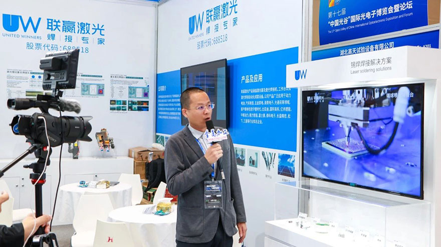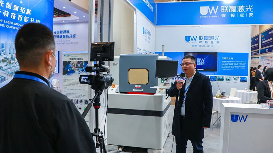 联赢激光激光位于2A01(展位),一度的吸引着馆内四方流动的人群,其中备受瞩目的是联赢激光激光锡球喷射焊接台,系列激光焊接头等。