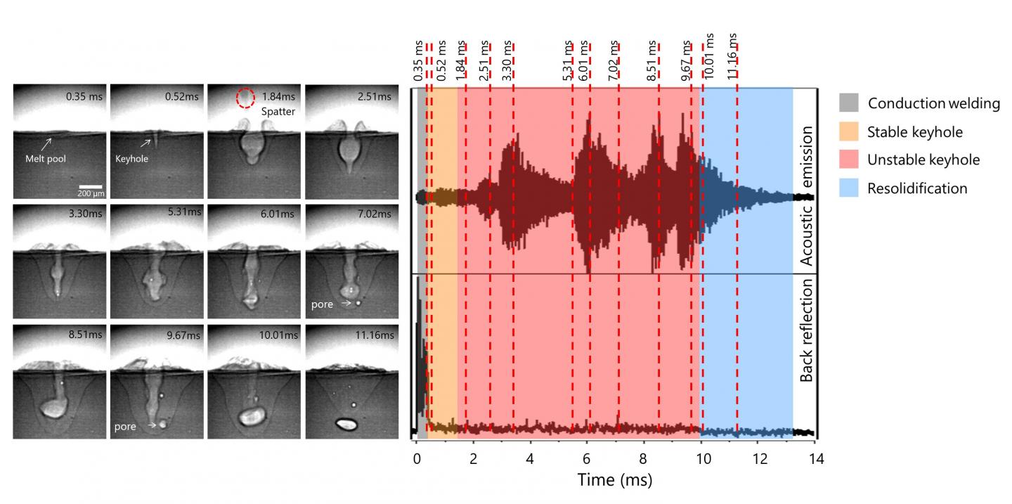 由Kilian Wasmer领导的欧洲金属加工厂商协会(EMPA)研究小组现在已经精确探测并记录了激光深熔焊的不稳定时刻。为了做到这一点,他们一方面使用廉价的声学传感器,另一方面测量激光在金属表面的反射。