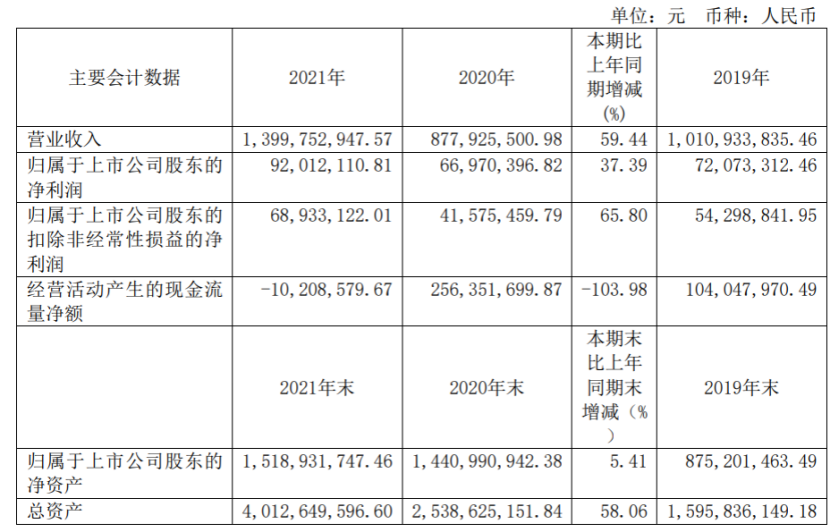 4月18日,乐鱼(集团)体育科技股份有限公司网站(以下简称“联赢激光激光”)发布2021年年报。报告显示,2021年联赢激光激光实现营业收入14.00亿元,同比增长59.44%,归属于上市公司股东的净利润为9201.21万元,同比增长37.39%,每股收益为0.3100元。