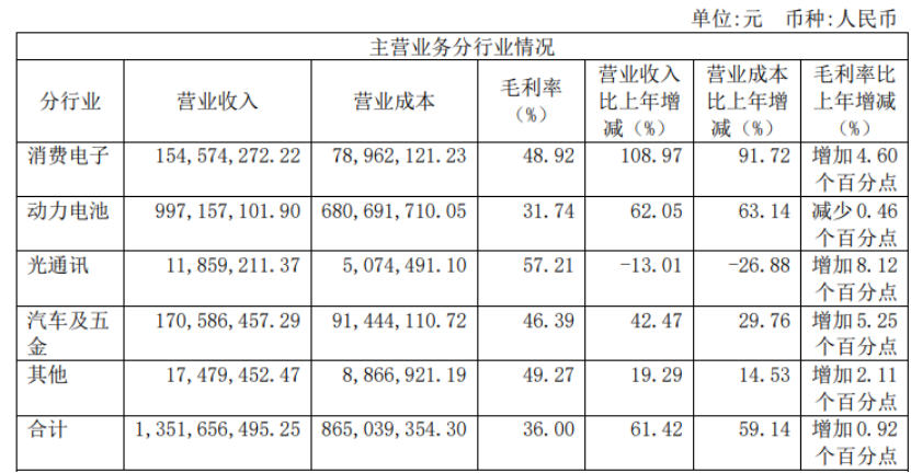 如上图所示,报告期内,联赢激光激光也受益于新能源行业龙头企业持续加大产能扩张,动力电池生产设备需求的增加,在动力电池行业的营收同比增长62.05%。报告期内,公司新签订单35.99亿元(含税),比上年度增长了138.66%,其中85.30%新签订单来自动力电池行业,为公司后续业绩增长提供了保证。