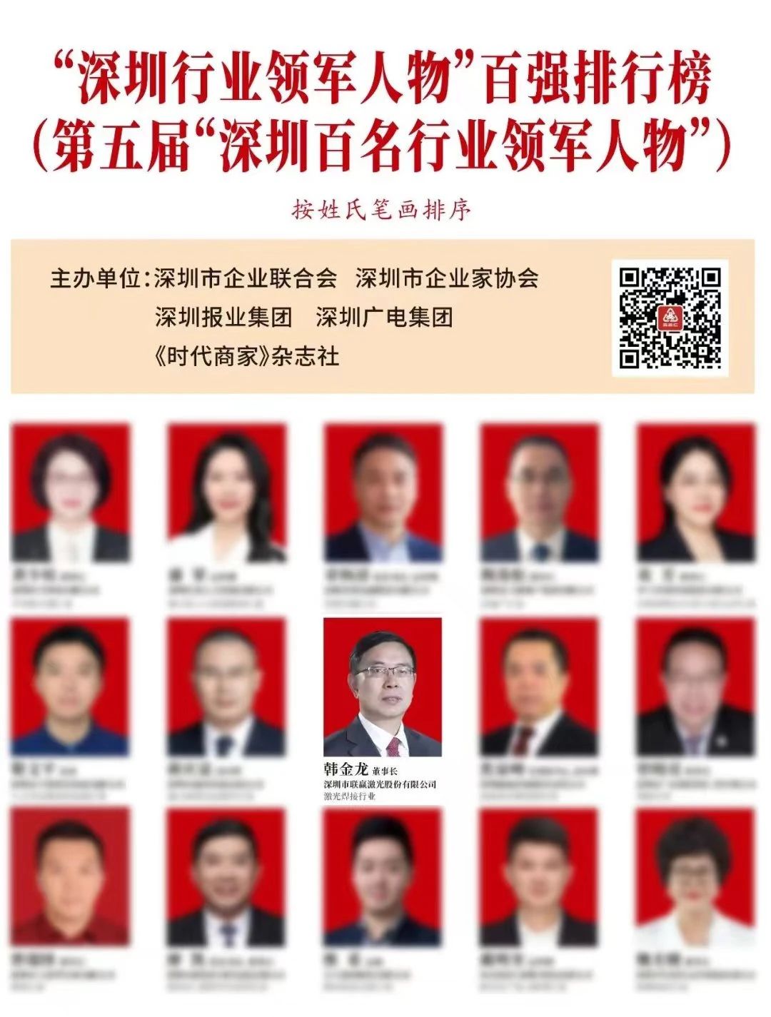 “深圳行业领军人物”百强排行榜的发布不仅凸显了深圳作为粤港澳大湾区核心引擎的地位和强大的创新实力,也展示了深圳企业家在新时代勇于开拓、不断创新的精神风貌。上榜的行业领军人物,如韩金龙先生等,都是傲立潮头、扬帆奋进的拼搏者,也是创新引领行业发展的先行典范,更是这座城市创新精神和奋斗精神的最好诠释。他们的成功经验,将为更多有志于创新创业的人士提供宝贵的借鉴和启示:弘扬新时代企业家精神,发挥企业家作用,为深化企业转型升级高质量发展,为全面推进粤港澳大湾区建设做出更大贡献。a