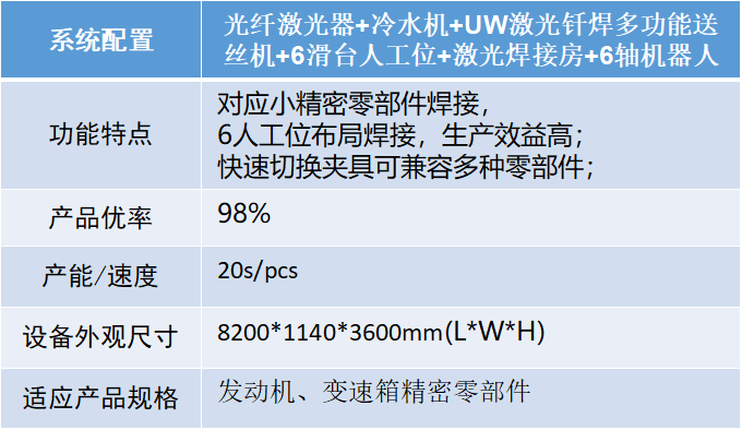 1、可采用多旋转台工位,降低上下料节拍,提升激光焊利用率,提高节拍;