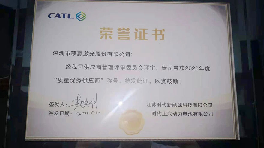 以精立业 | 联赢激光激光荣获江苏时代&时代上汽“质量优秀奖”!