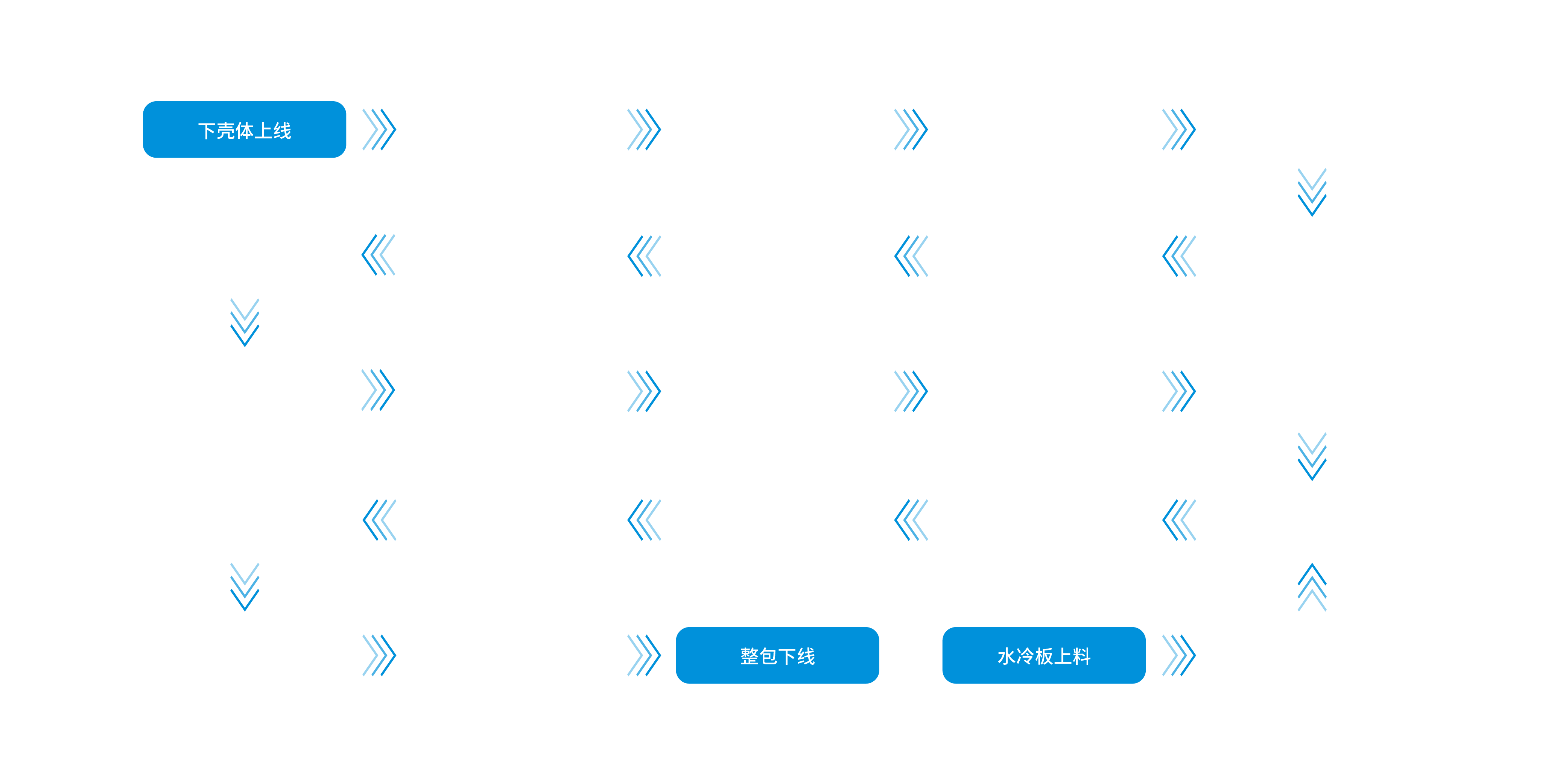 整线为环形辊筒线体,配置龙门吊具及辅助工装支架,可根据客户需求完成模组入箱、高低压插件安装、BMS板安装、线束安装、水冷板涂胶、水冷板安装、DCR测试、气密性测试、EOL测试等PACK组装及检测工序。